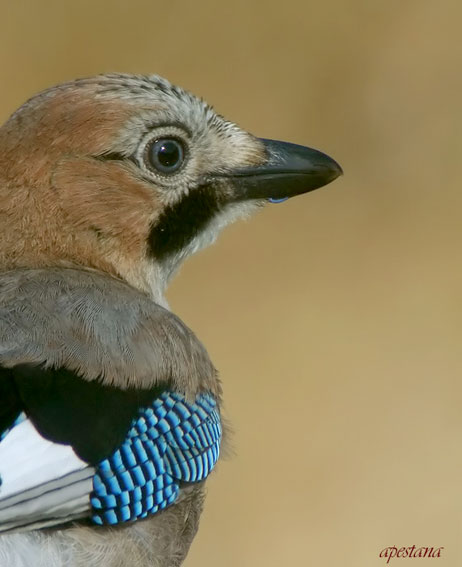 "Si decimos que esta especie pertenece a la familia de los córvidos, es probable que al lector se le venga a la cabeza la imagen de un pájaro de color negro. Sin embargo, estamos ante un ave con un colorido realmente llamativo: marrón, negro, blanco, azul, etc. Eso sí, dotado, como sus primos, de potente pico. Por su costumbre de enterrar bellotas para consumir después, no recordando siempre dónde las ocultó, contribuye a la repoblación de las encinas, robles y alcornoques ibéricos".