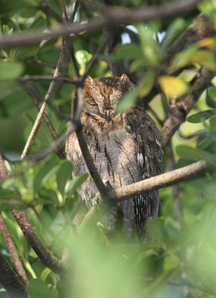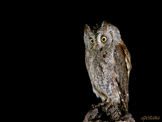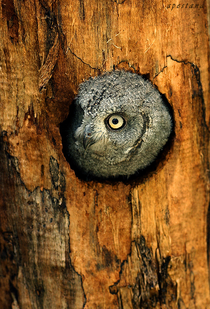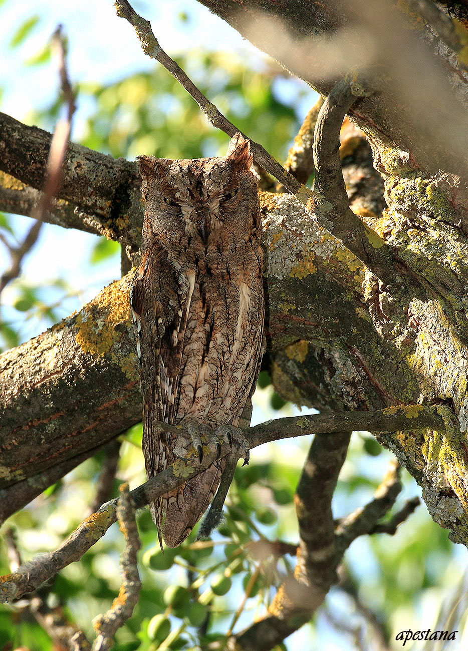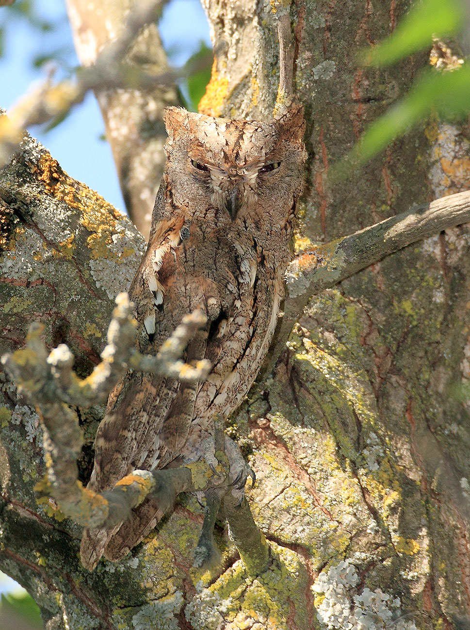 Las rapaces nocturnas son aves tremendamente curiosas. Algunas, como este autillo europeo de la foto, confían tanto en su camuflaje que en lugar de huir, cierran casi por completo los ojos. Con eso consiguen que no veamos una cara. Pero no nos equivoquemos, no los cierran del todo, y nos seguirán con la cabeza, espiándonos por sus dos pequeñas rendijas, hasta que dejemos de ser una amenaza.