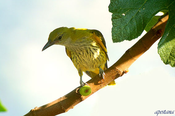 "Una silueta dorada se desliza entre las ramas del álamo, los reflejos de las aterciopeladas hojas arropan a la preciosa oropéndola que con sigilo, se desplaza por una larga y delgada rama en busca de su nido, donde guarda un gran tesoro, un tesoro que quiere comerse el mundo".